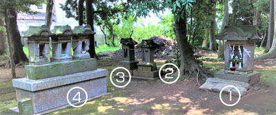 台正面銘「氏子中」側面銘「明治22年6月建造」由来は不明である。上記移転4社の日枝大神(山王社)や稲荷明神が含まれるのかも知れない。